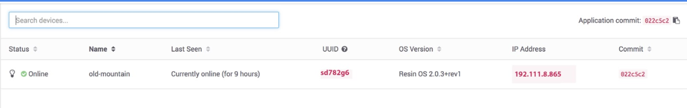 When you click into your application on the Resin.io dashboard you will see a list of all the devices that are connected under your myCoolApp.